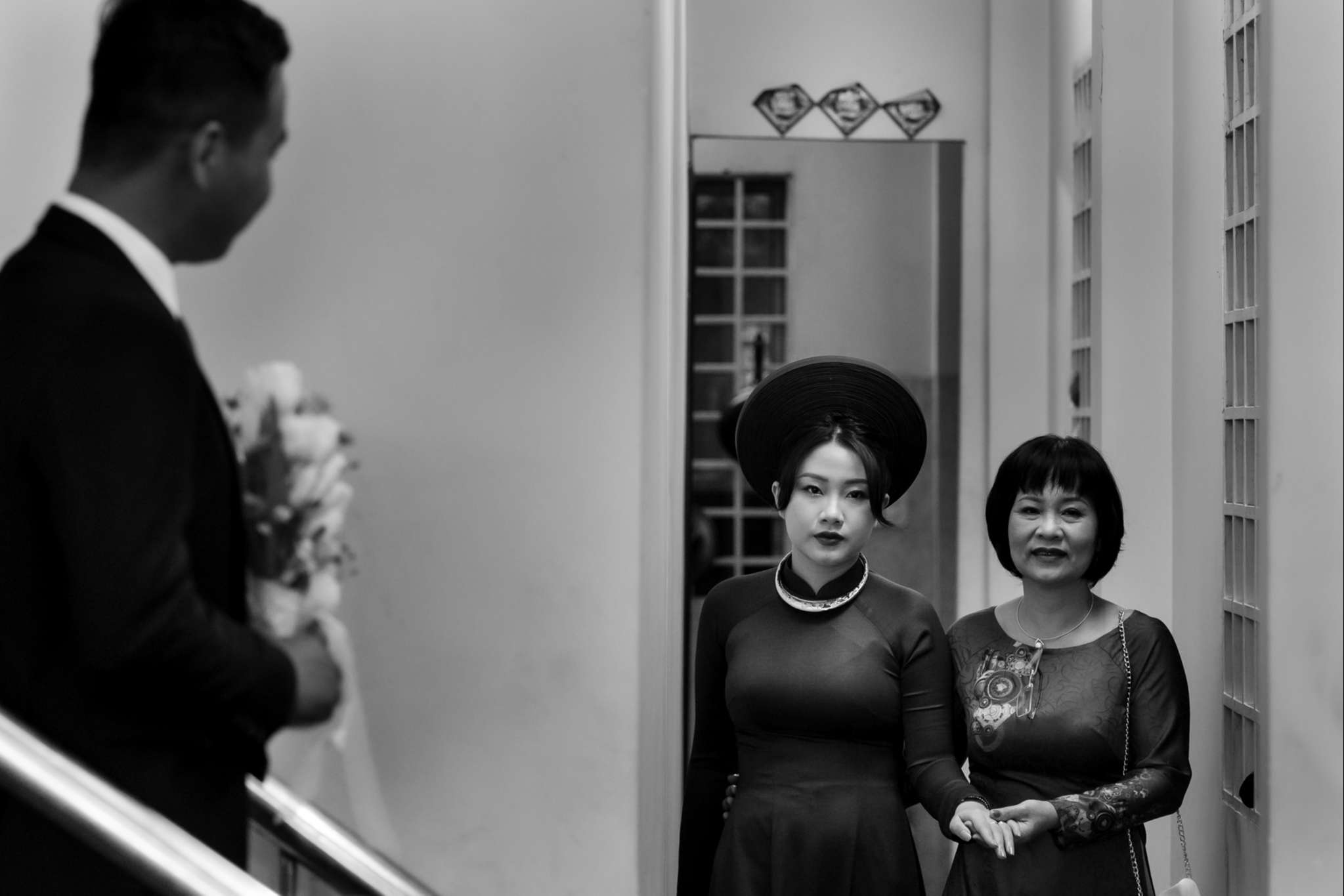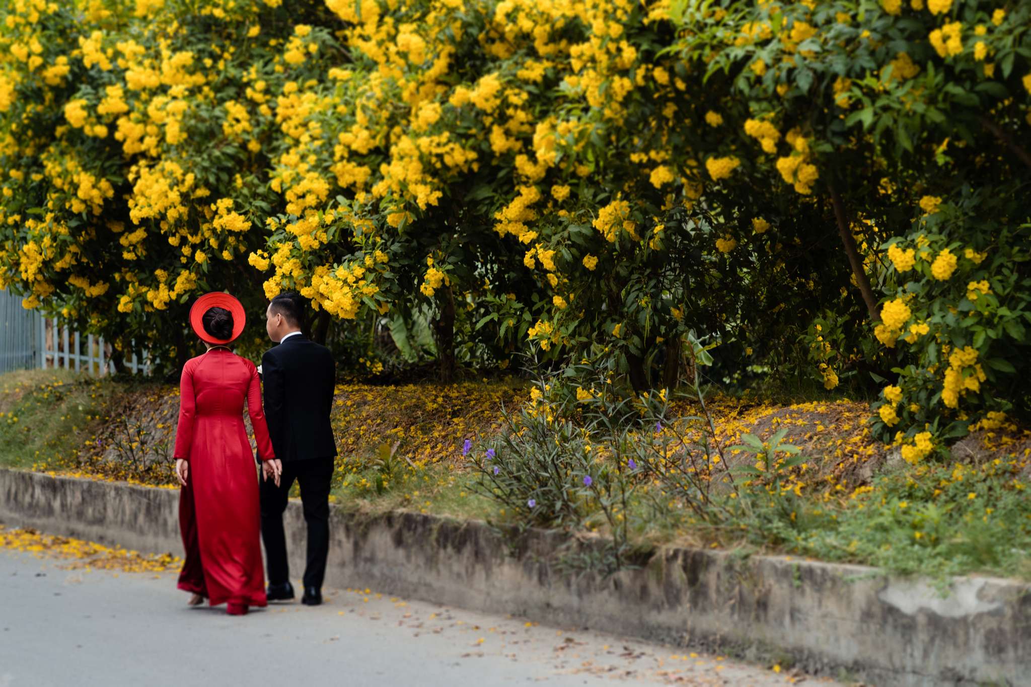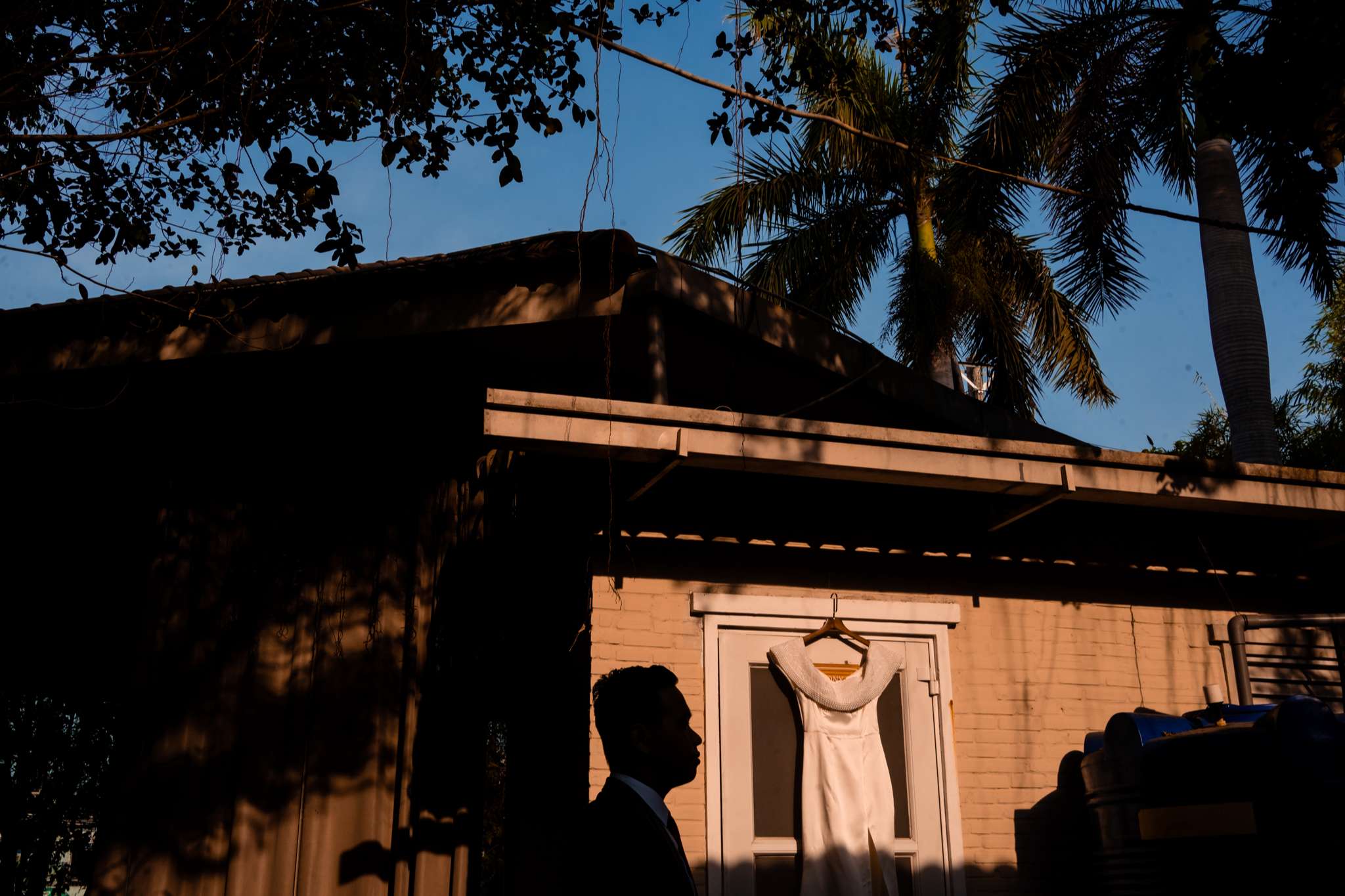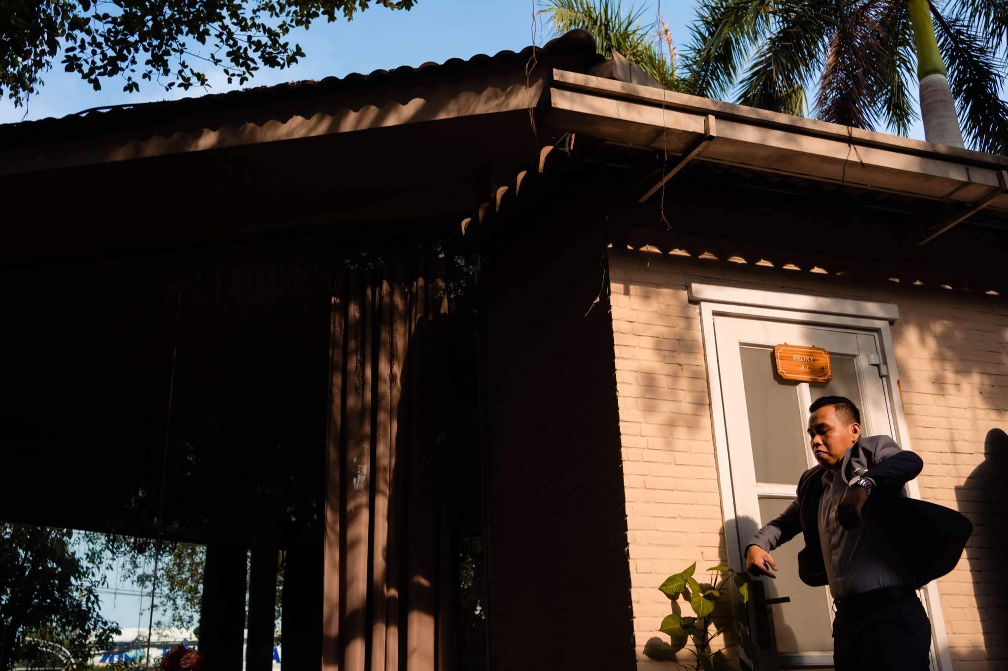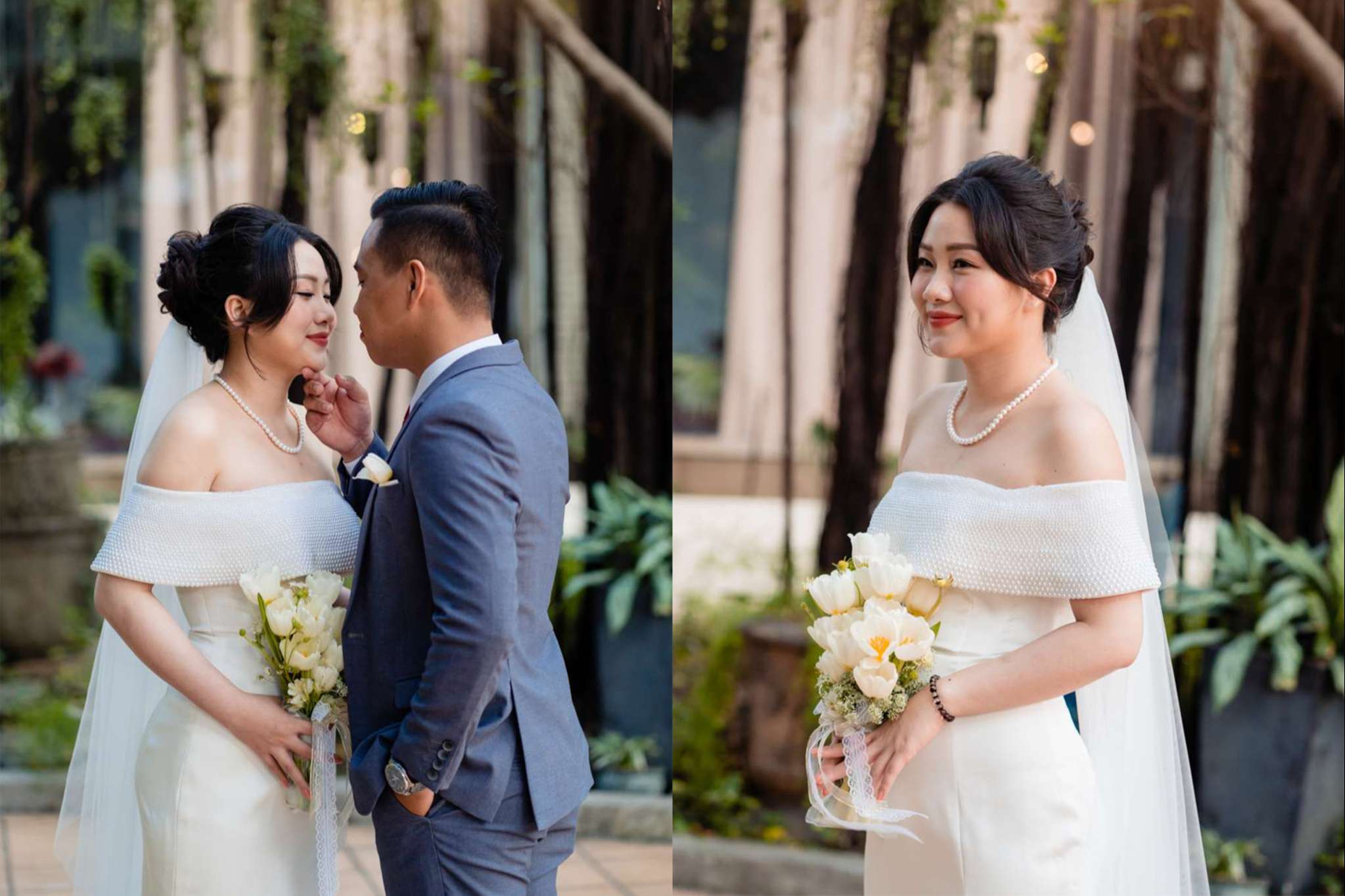 Buổi chiều Hà đãi tiệc trên nhà hàng Le Jardin, team tụi mình đến sớm hơn. Hôm đó nắng đẹp, vạt nắng vắt chiều màu vàng mật, vắt ngang trên bức tường dưới gốc cây si. Chiếc áo dài được Mẹ của Hưng ủi rất tỉ mỉ và chăm chút. Hà ngồi make up trong phòng, Hưng đang chuẩn bị cho mình từ cravat với áo vest. Mọi thứ được chuẩn bị thật chỉn chu cho buổi tối trọng đại của Hà và Hưng.