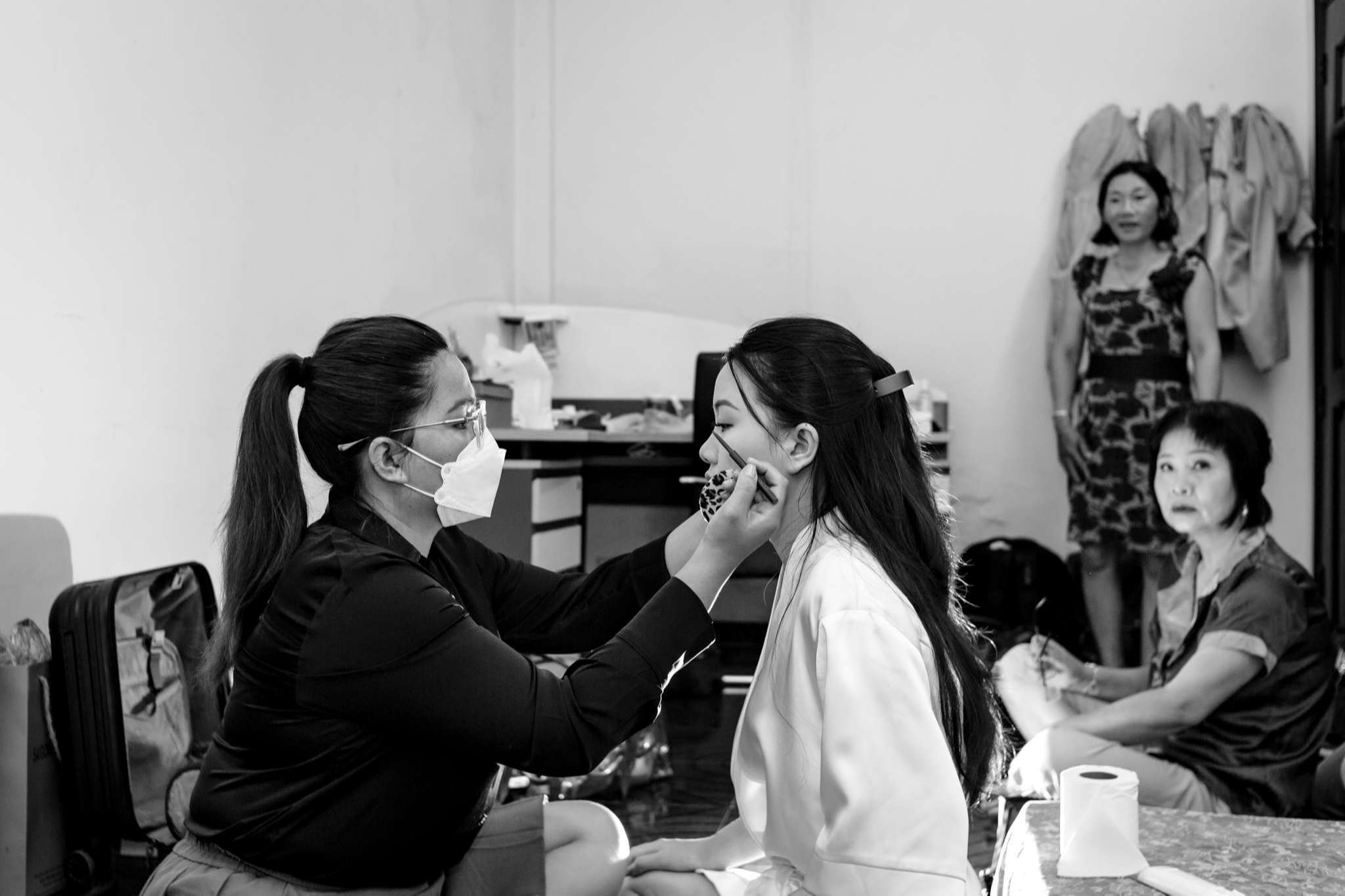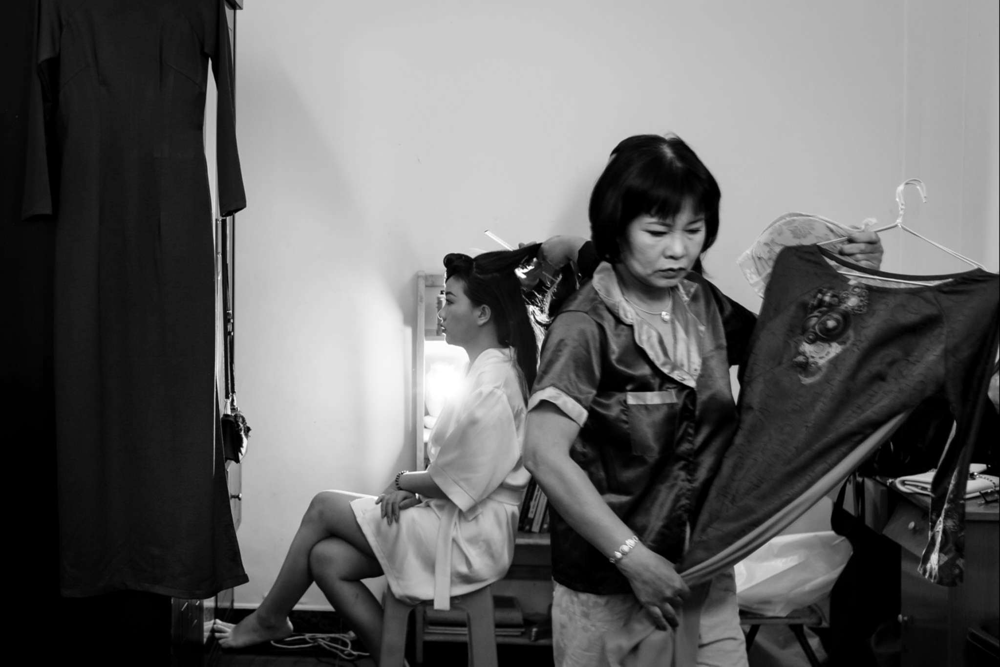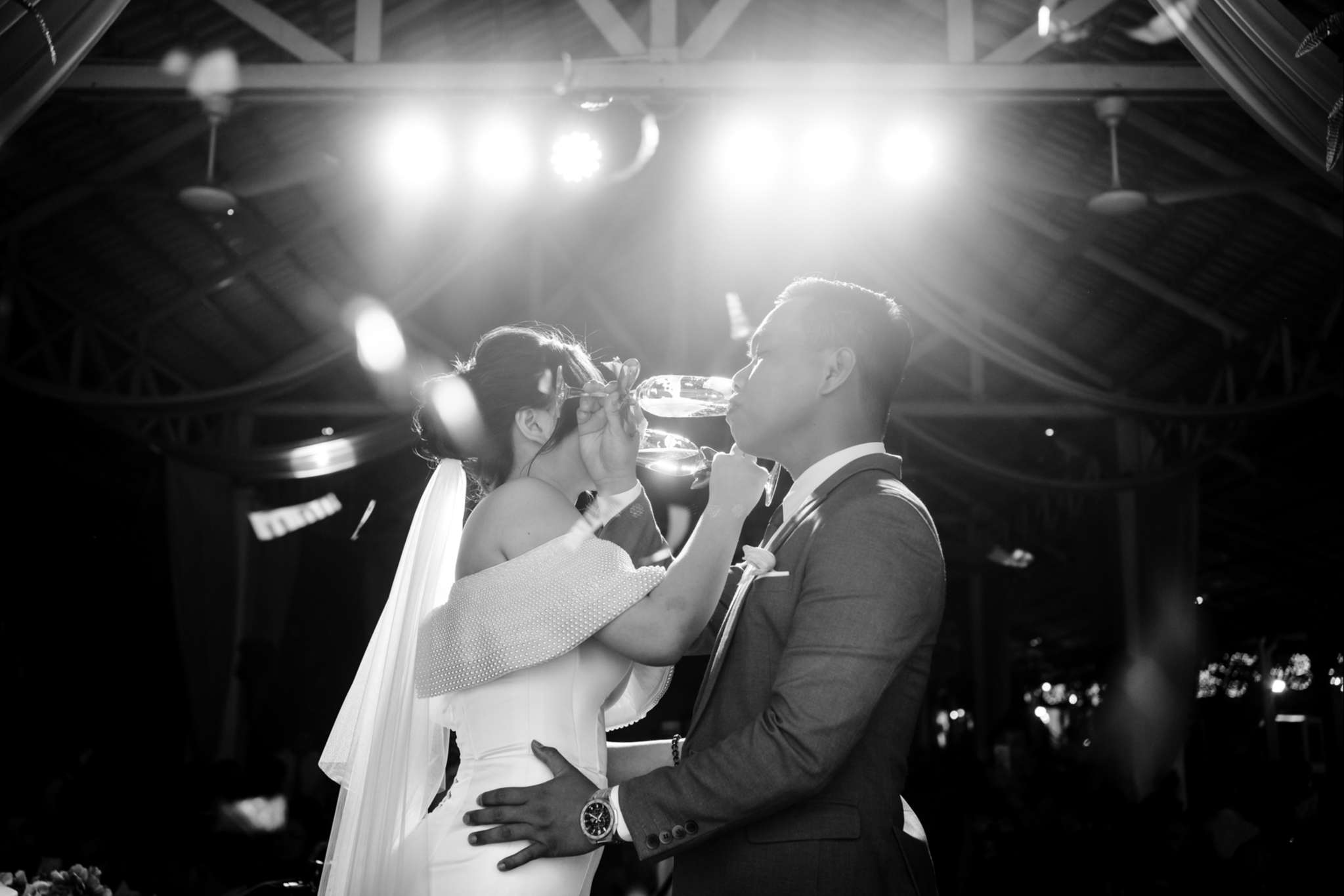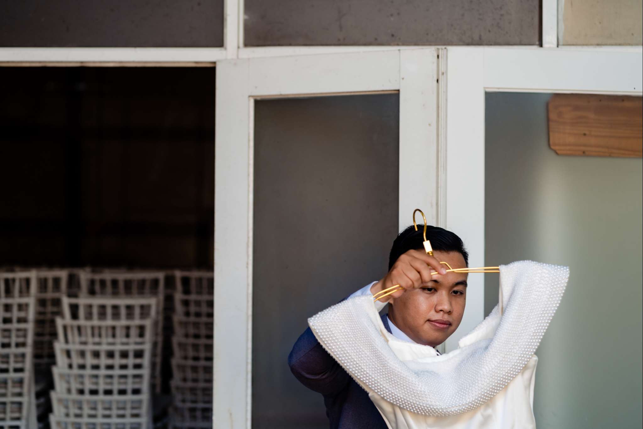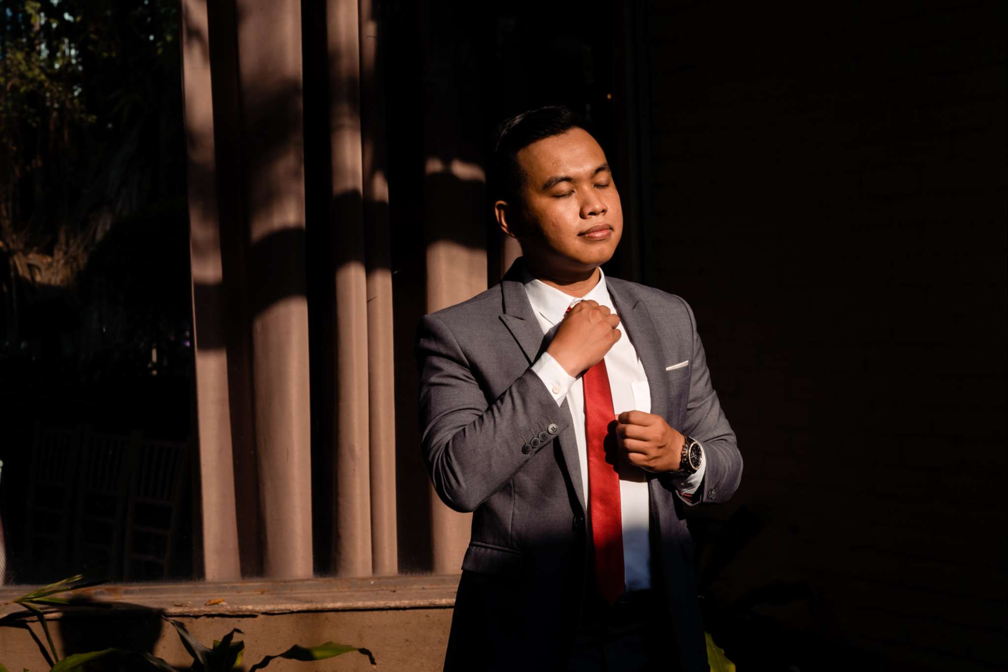 Buổi chiều Hà đãi tiệc trên nhà hàng Le Jardin, team tụi mình đến sớm hơn. Hôm đó nắng đẹp, vạt nắng vắt chiều màu vàng mật, vắt ngang trên bức tường dưới gốc cây si. Chiếc áo dài được Mẹ của Hưng ủi rất tỉ mỉ và chăm chút. Hà ngồi make up trong phòng, Hưng đang chuẩn bị cho mình từ cravat với áo vest. Mọi thứ được chuẩn bị thật chỉn chu cho buổi tối trọng đại của Hà và Hưng.